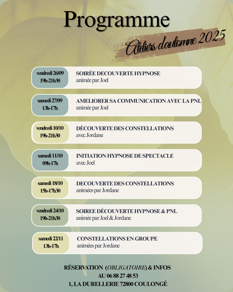 ✅ Séances de groupe autour de la PNL et de l’hypnose