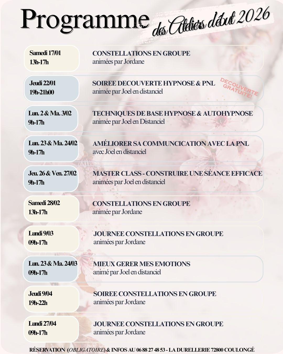 Ateliers Début 2026